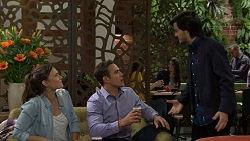 Aaron asks if David has spoken to Kazuko about Bradley Satchwell, the man he thinks may be his father. (He explains Amy has told him about the situation.) David explains that Kazuko clammed up when he brought it up last time. Aaron says David should ask her again; it's not right for her to keep information about his dad from him. David's very sceptical, but Aaron suggests he bring it up today.